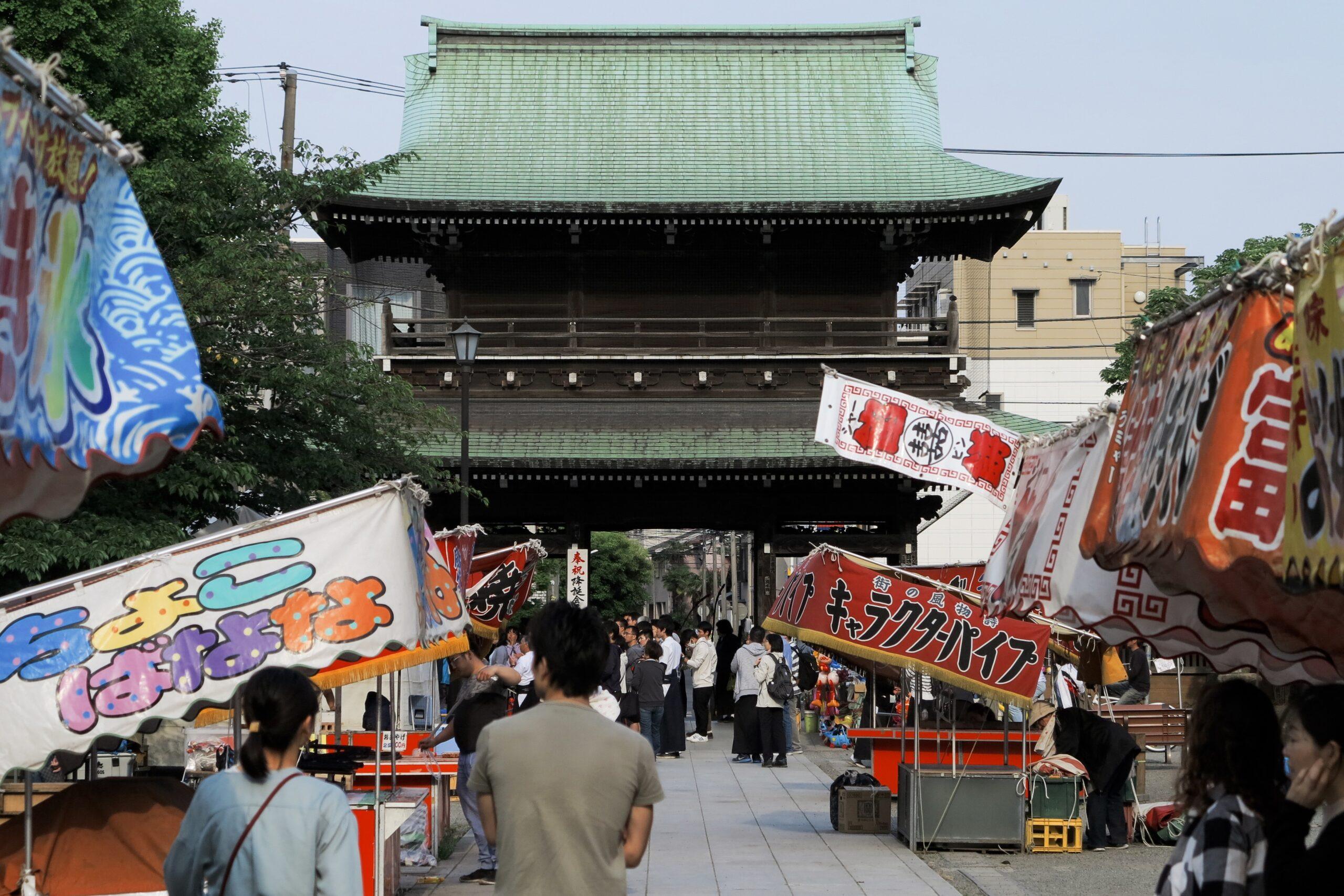 As you walk away from the main shrine, you will see (and smell) rows of colorful food stalls. These are called Yatai (Kanji: 屋台 / Hiragana: やたい / Romaji: Yatai). This isn’t just a snack; it’s a full-on festival vibe.